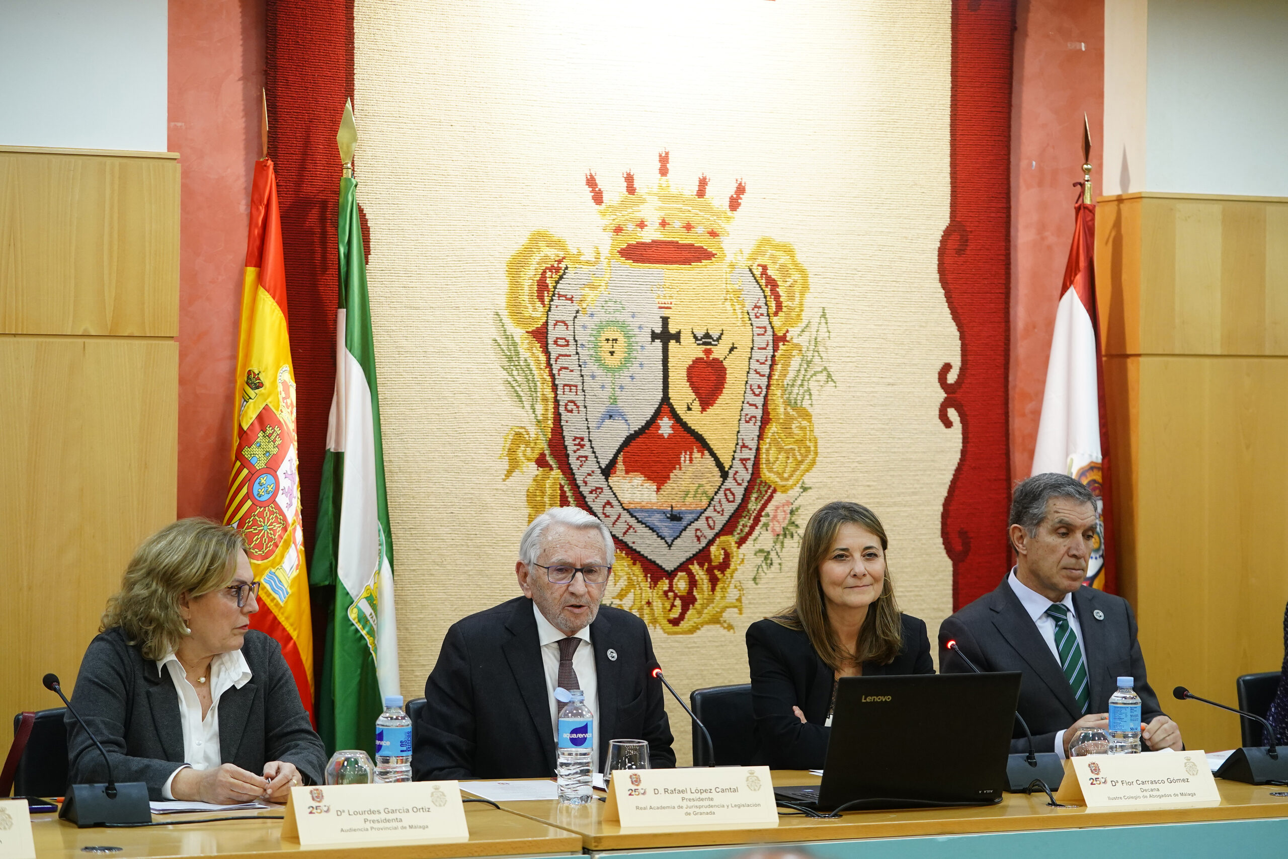 El evento, celebrado en el marco del 250º aniversario de la Abogacía de Málaga, sirvió también para afianzar los ya de por sí sólidos vínculos históricos entre esta Corporación profesional y la Real Academia de Jurisprudencia y Legislación de Granada que, como indicó su presidente, extiende su ámbito de actuación a Andalucía Oriental.